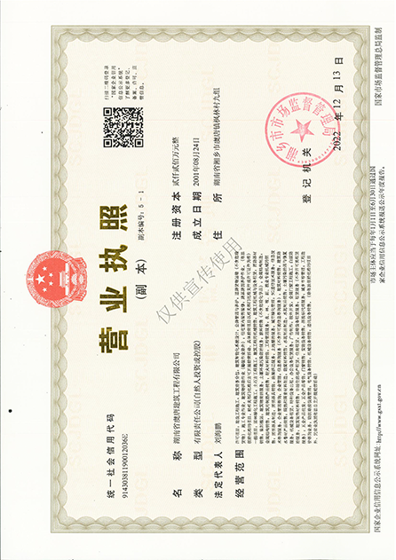 鋼結構專業承包叁級、環保工程專業工程承包叁級、承裝(修、試)電力設施四級、路面養護乙級資質、橋梁養護乙級資質、隧道養護乙級資質、交通安全設施養護乙級資質、施工勞務不分等級等多項施工資質。